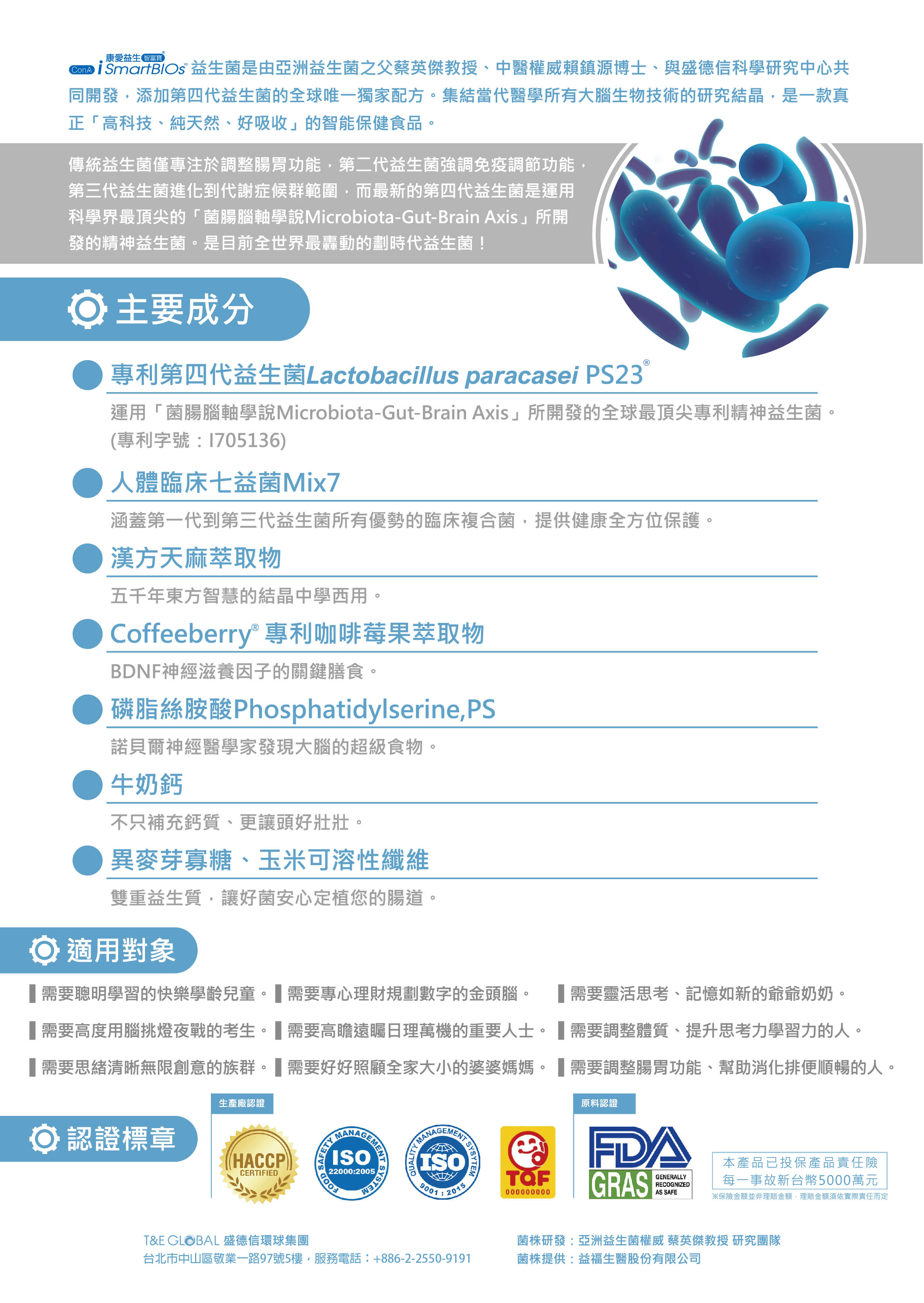 全球獨家唯一完整涵蓋目前所有益生菌所有的功能
